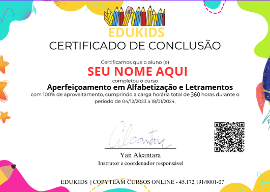 Curso de Aperfeiçoamento em Alfabetização e Letramentos e Certificado de 360h